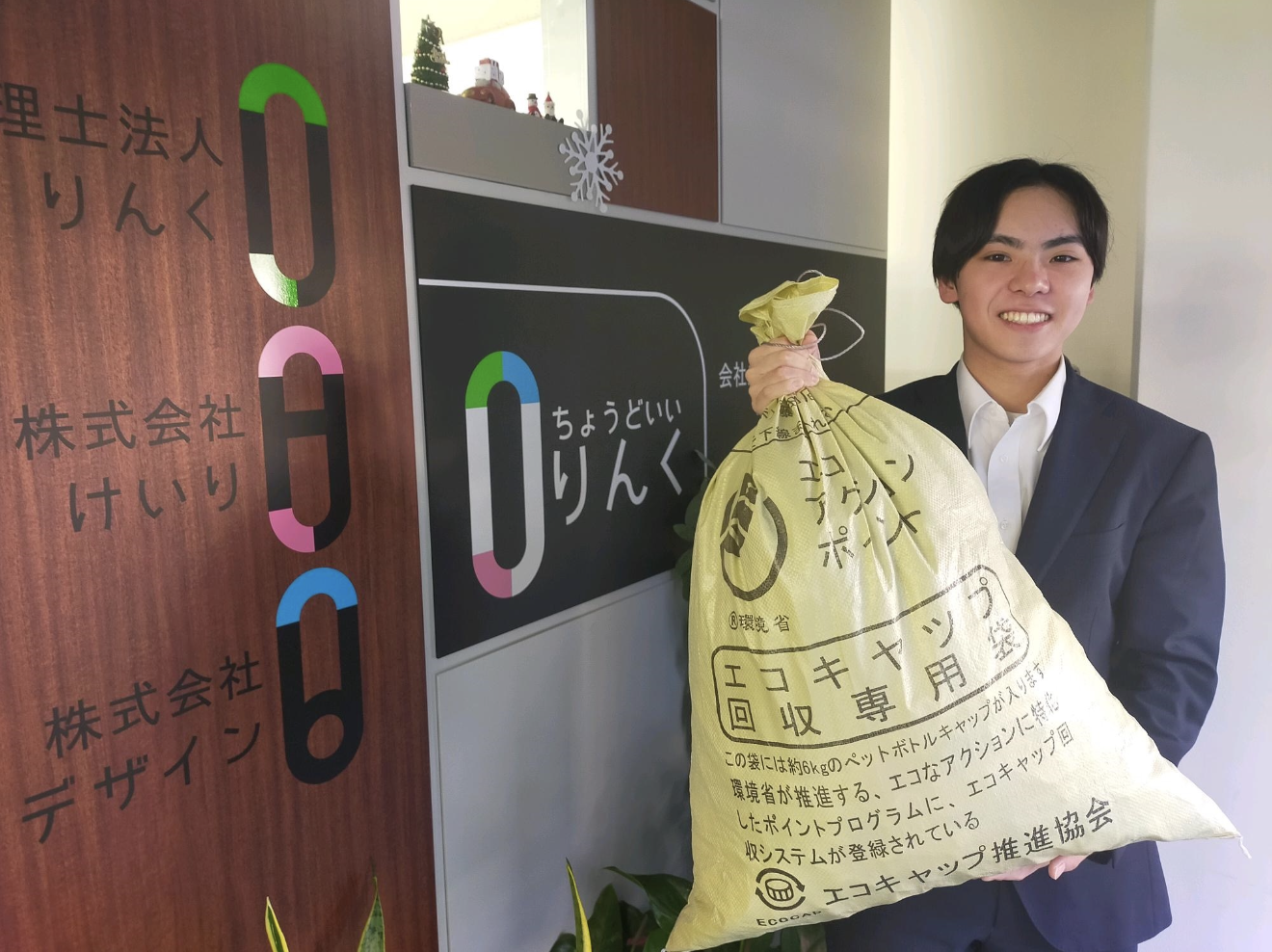エコキャップを回収し再資源化で得た収益で、世界の子どもにワクチンを送る取組みに 役立ててもらうため、りんくグループでもエコキャップ運動に参加しています!