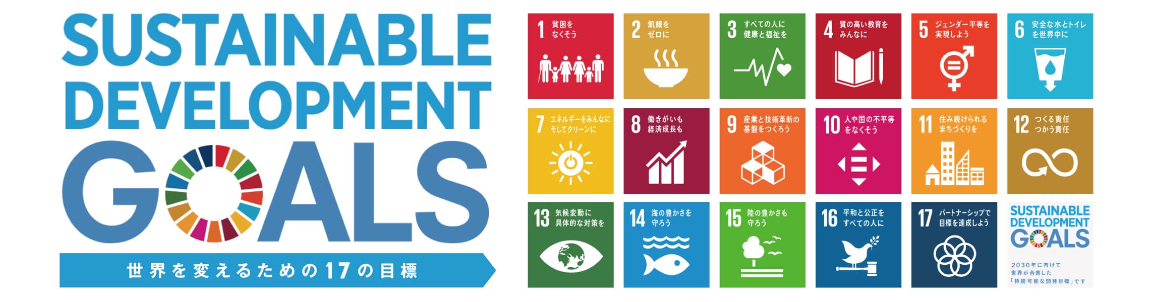 - 2016年〜2030年までの15年間で世界が達成すべきゴールを表したものです。